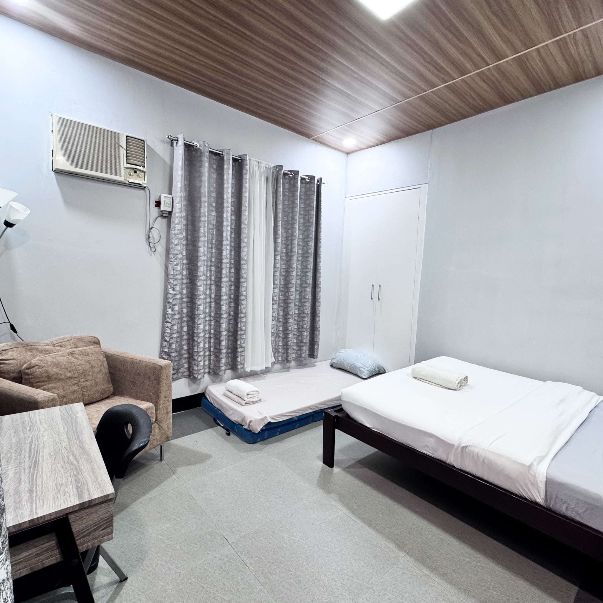 Enjoy a private, fully air-conditioned home ideal for families, teams, or group travelers. This spacious unit includes: airconditioned, refrigerator, kitchen & dining area, induction stove, hot & cold shower, fresh linens, toiletries, silverwares, water dispenser, plates, mugs, glass and electric kettle, wardrobe or closet per room, living area