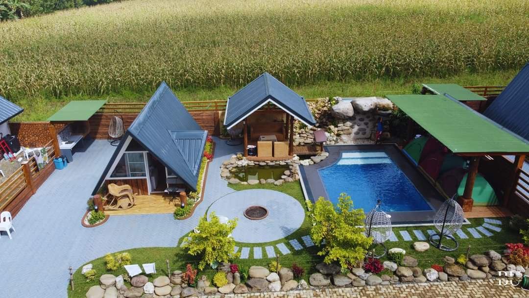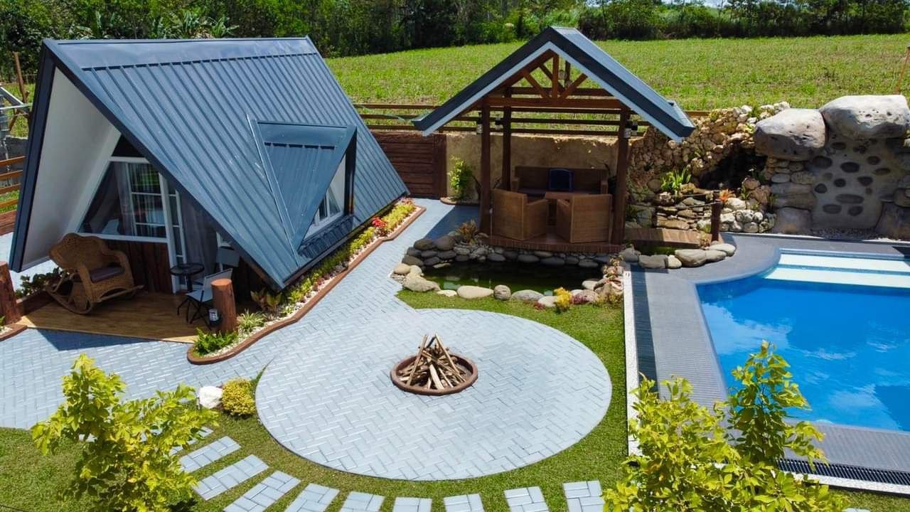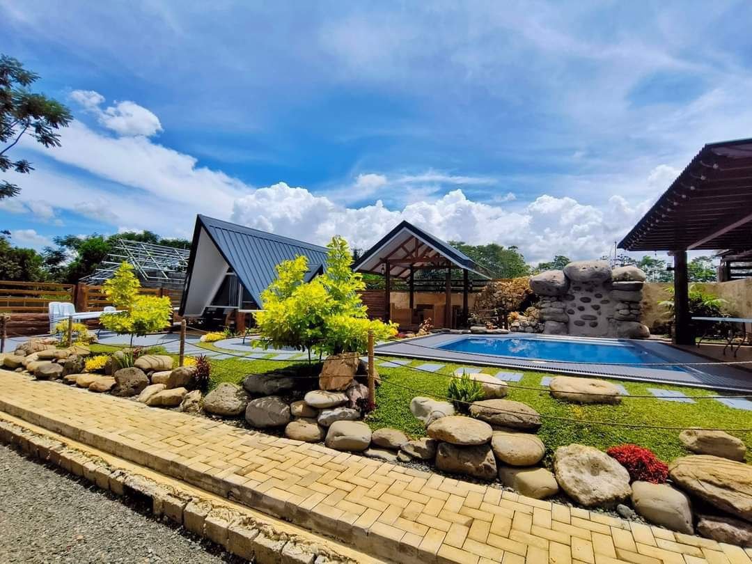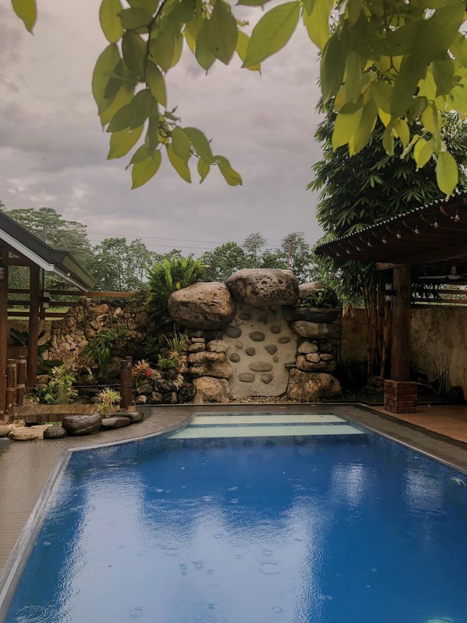 Airconditioned dorm and cabin with kitchen, dining table, complete cookware (karahay, kaldero), plates, silverware, toiletries, dirty kitchen, private pool, and accommodations for up to 12 guests (8 in dorm, 4 in A-house).